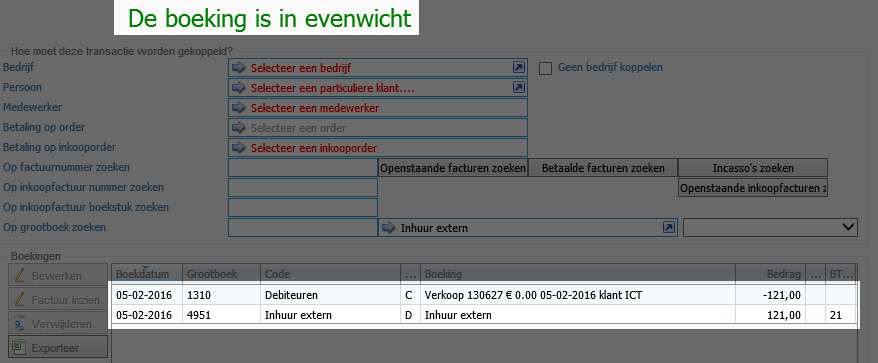 De boeking zal nu in evenwicht zijn, en dit scherm kan je ook opslaan