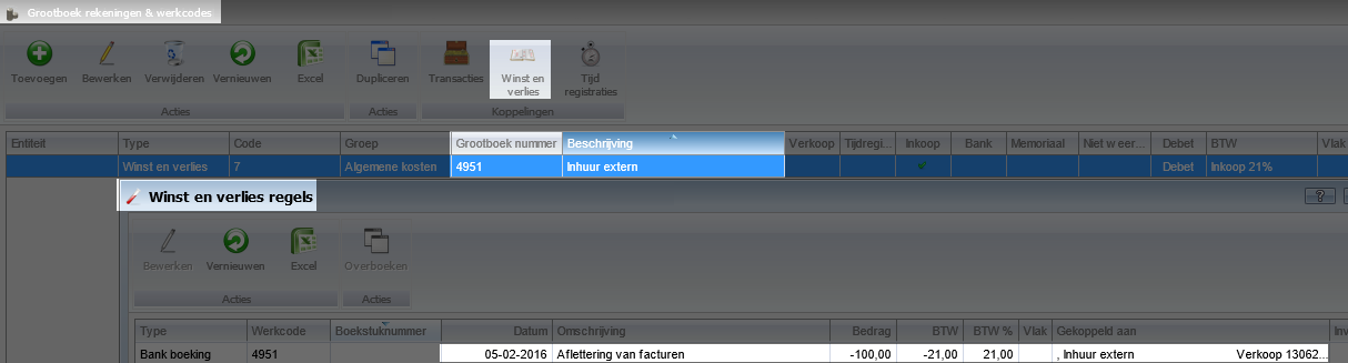 Zoek hierin de grootboeknummer en klik op selecteren