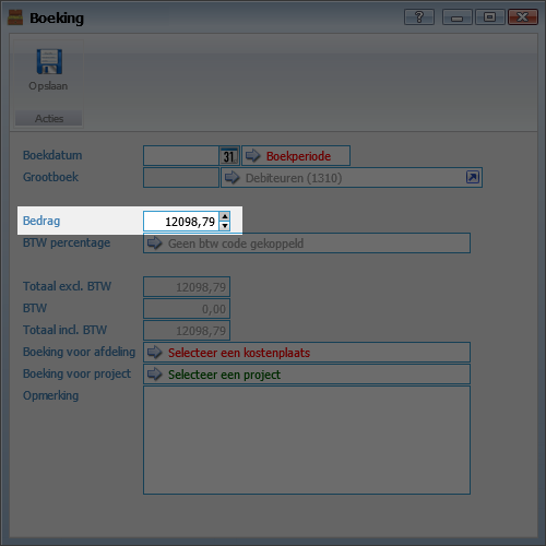 Selecteer de regel welke het hoogste is en open deze door er op de dubbelklikken Hierin kunnen we het bedrag aanpassen naar het bedrag van de inkoopfactuur in dit geval: €12.098,79 en deze kan je opslaan