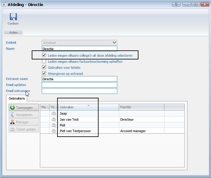 Op het moment dat Jaap een offerte maakt met afdelingsrechten en Jaap zit in de afdeling Directie, dan kan hij alleen maar 4 gebruikers selecteren.
