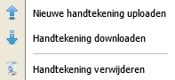 Door in het vakje waar de handtekening staat je rechtermuisknop te gebruiken verschijnen onderstaande opties: