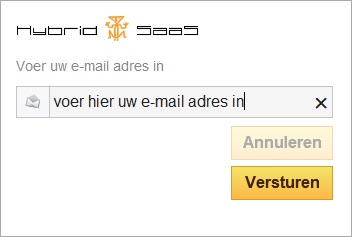 Het kan natuurlijk altijd voorkomen dat je je wachtwoord of je inlognaam bent vergeten en daardoor niet meer kunt inloggen in je Hybrid SaaS omgeving. Je kunt zelf met je e-mailadres een nieuw wachtwoord aanvragen. Met deze procedure kan je ook je inlognaam achterhalen.