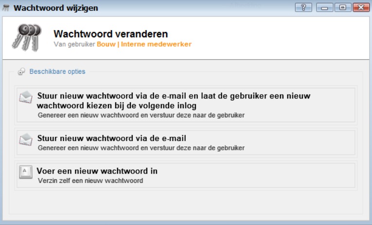 Onder deze knop zitten 3 functies om een wachtwoord te wijzigen en eventueel te versturen.
