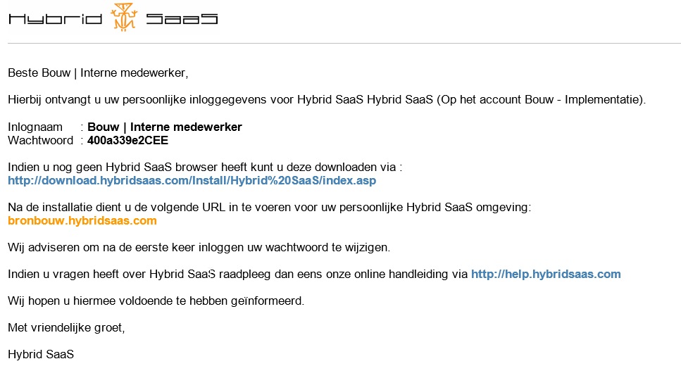 Indien je meerdere Hybrid SaaS accounts hebt ontvang je voor elk account een aparte e-mail. In het onderwerp van deze e-mails kan je de inlognaam vinden.