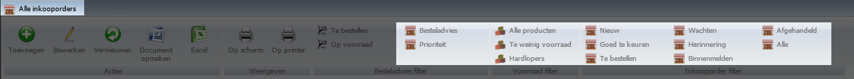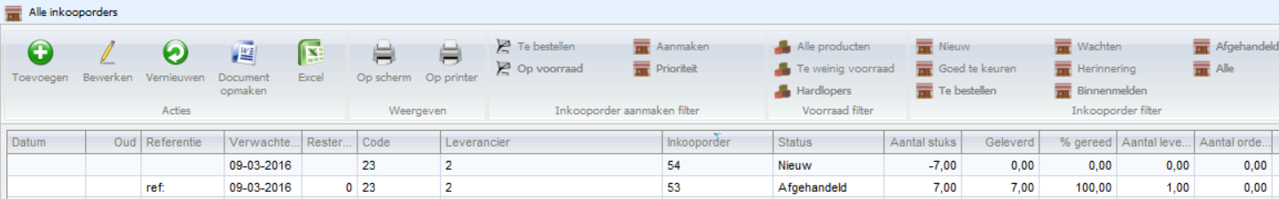 Vanuit de inkooporder (maakt niet uit welk bakje) is er een filter mogelijkheid gemaakt, hierdoor hoef je niet te zoeken en heb je alles binnen handbereik