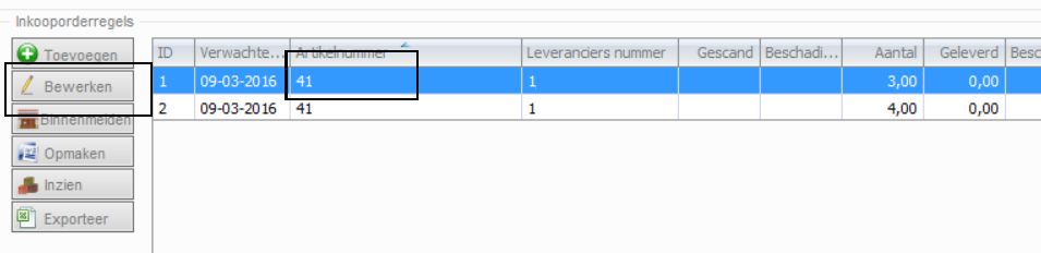 hier kun je leverancier wijzigen en de regels op een inkooporder plaatsen