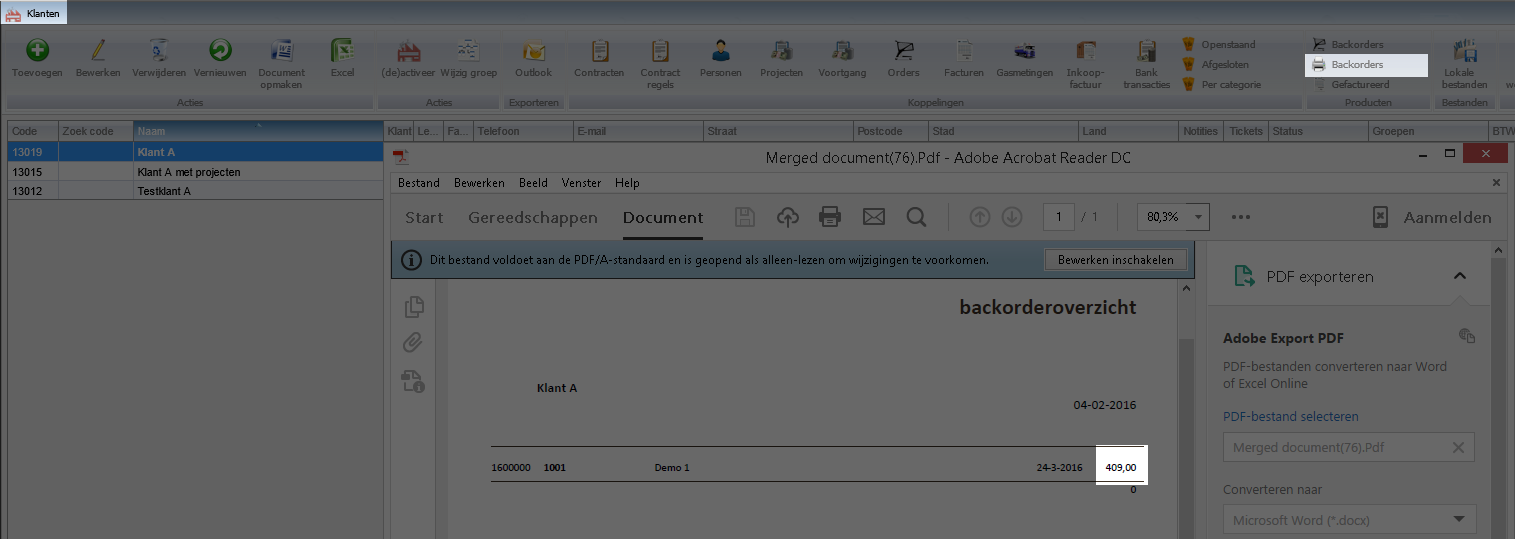 Vanuit de factuur springen kun je altijd even naar de gekoppelde order om te kijken hoe het er voor staat.