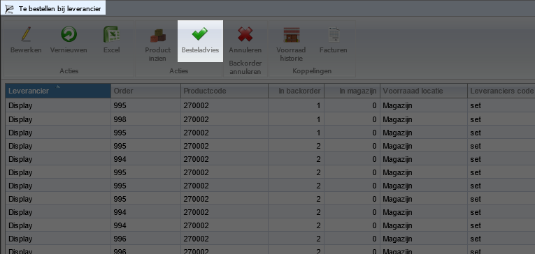 - Prioriteit: hetzelfde als besteladvies, echter komen hier de drop shipment artikelen in te staan, deze gaan naar specifieke klanten, zo kun je snel deze orders 1x per dag bestellen zonder na te denken over de rest.