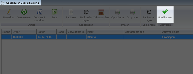 De verkoopafdeling keurt de order goed, waardoor hij naar het magazijn gaat.