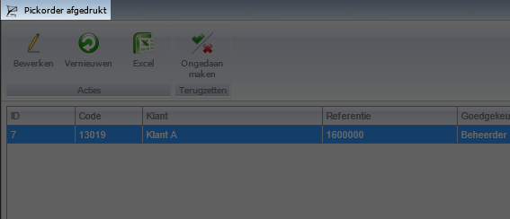 De spullen zijn geraapt, de afgedrukte pickorder kan worden opgezocht in het magazijn.