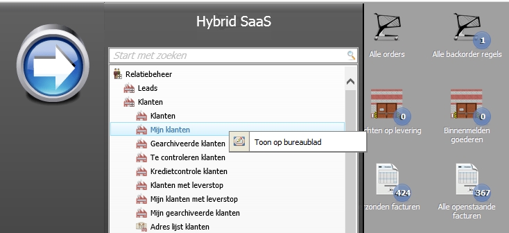 Als je met meerdere omgevingen werkt, is het makkelijk om deze vast te laten zetten op het begin scherm van Hybrid SaaS. Hieronder wordt per stap uit gelegd hoe je dit kan doen