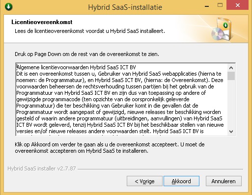 Klik op akkoord om de licentievoorwaarde te accepteren.