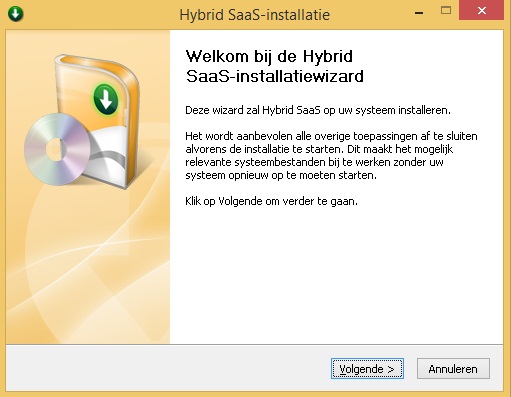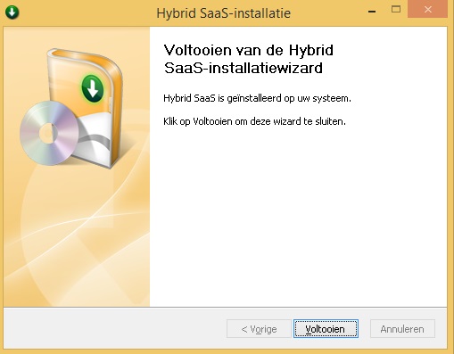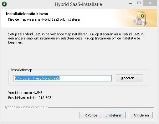 Klik op installeren om de installatie te starten. De Installatiemap (C:\Program Files\ Hybrid SaaS) die wordt voorgesteld kan je zo laten staan.