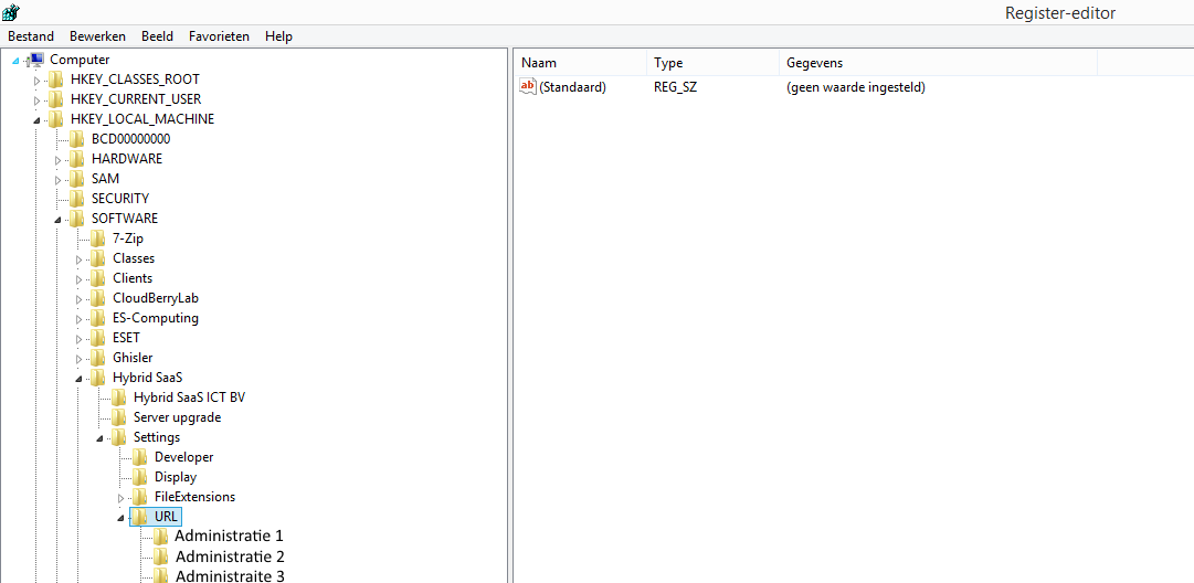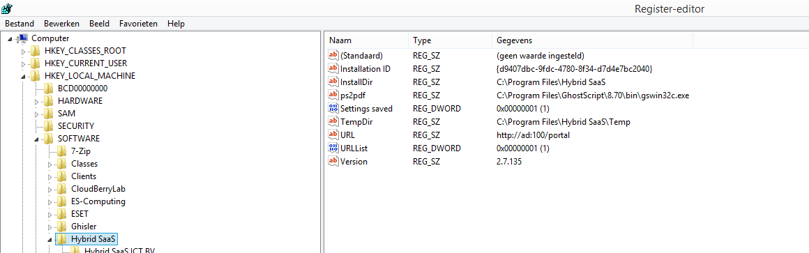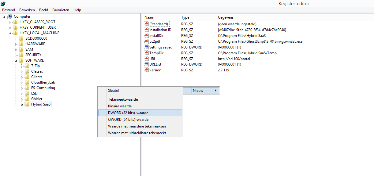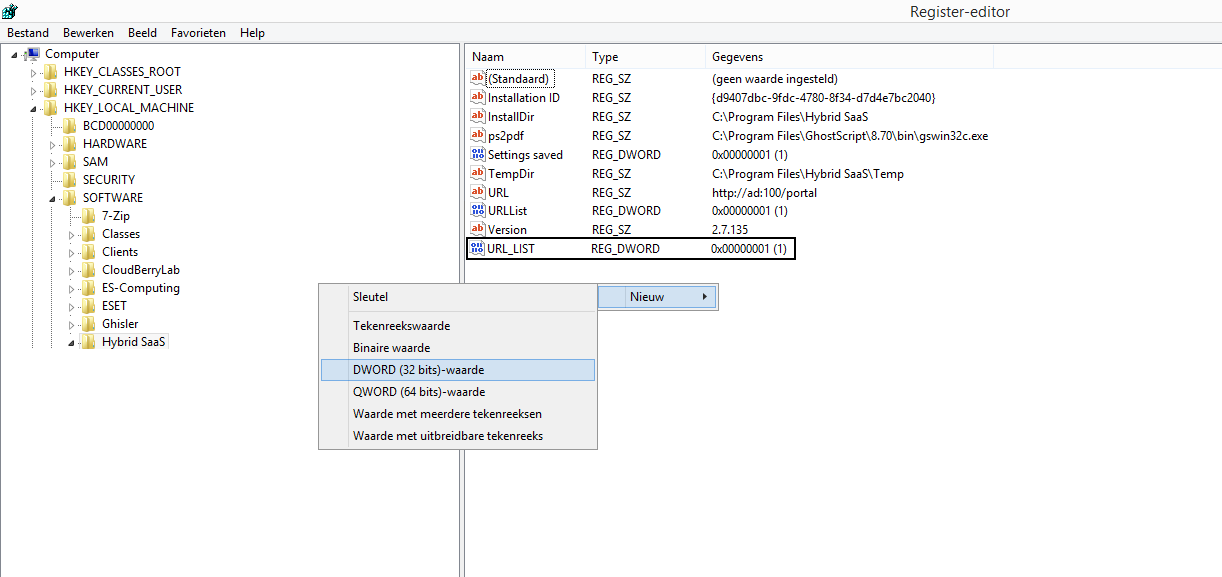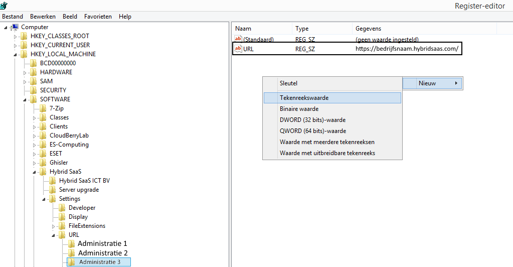Dubbelklikken op de regel en bij waarde gegevens dien je https://bedrijfsnaam.hybridsaas.com (als je deze niet weet kan je hem opvragen via support@hybridsaas.com)
