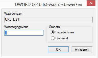 In deze map kan je via je rechtermuisknop een tekenreeks toevoegen en deze geef je de naar URL