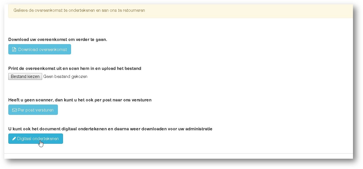Na het downloaden van de aannemingsovereenkomst komen er extra opties tot beschikking