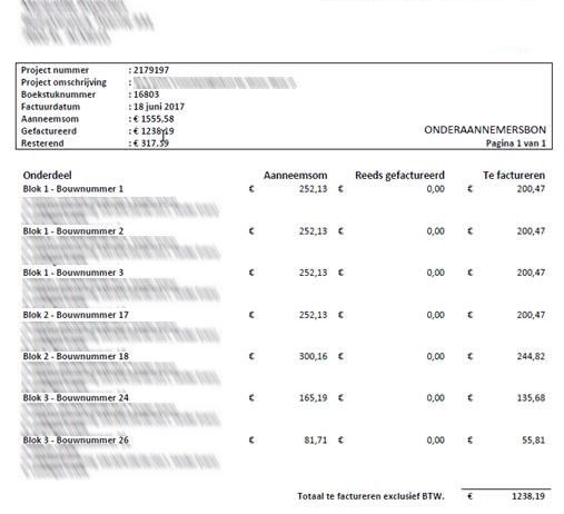 In dit Project is op dit moment uitbesteed voor 1728,40 te factureren door onderaannemer