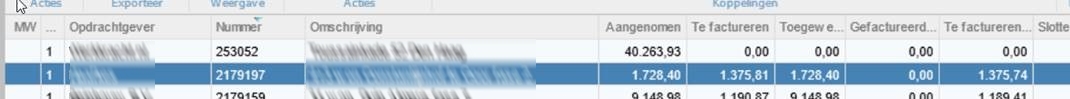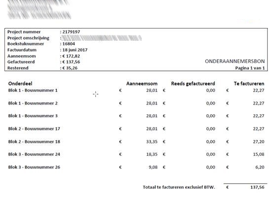 Onderaannemer ziet via zijn omgeving de bedragen – 10% staan, ook bij de te factureren ziet hij de -10% staan.