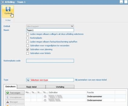 Door afdelingen aan te maken kunnen er gebruikers in een team gestopt worden,