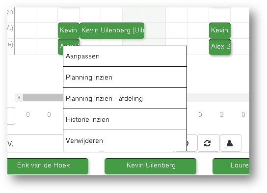 Met de 2e optie [Planning inzien - afdeling] kan er worden ingezien wat het hele team (afdeling) aan het doen is.
