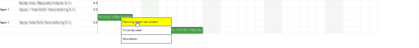 Het is ook mogelijk om de projecten of medewerkers van een team te zien in een filter, Je ziet dan ook alleen de projecten van het team terug