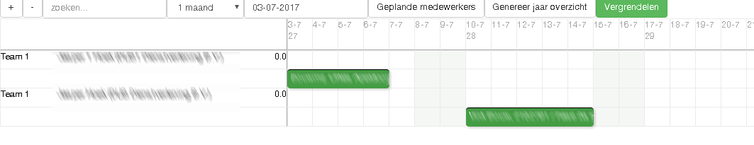 Nu kan Medewerker B wel worden gekoppeld aan dit item en zal automatisch gelinkt worden met de werkzaamheden en dus ook de hoofdwerkcode, verschuiven van het geheel neemt Medewerker B ook mee in de planning