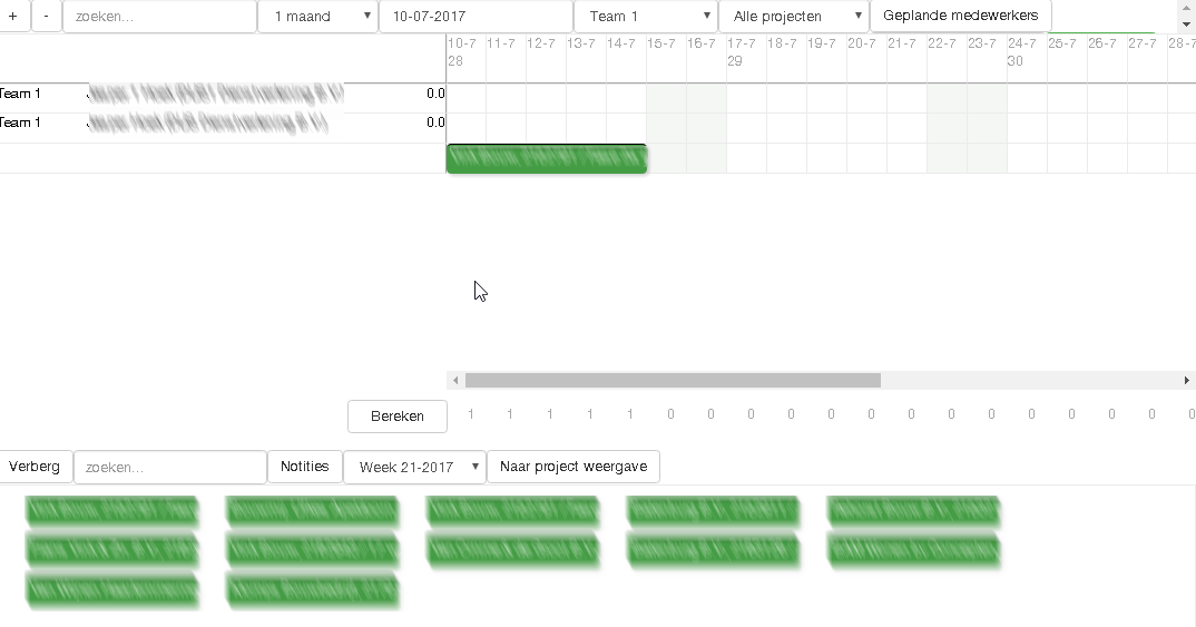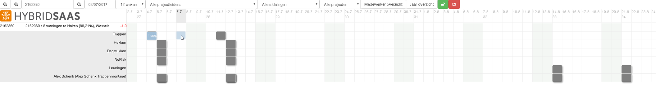 Let op! Dat als de snelheid of aantallen aanpast is dat dit nog niet prorato doorgerekend wordt op de onderliggende werkcodes. Ook het handmatig groter maken van de blokjes hebben geen invloed op de aantallen / waarden.