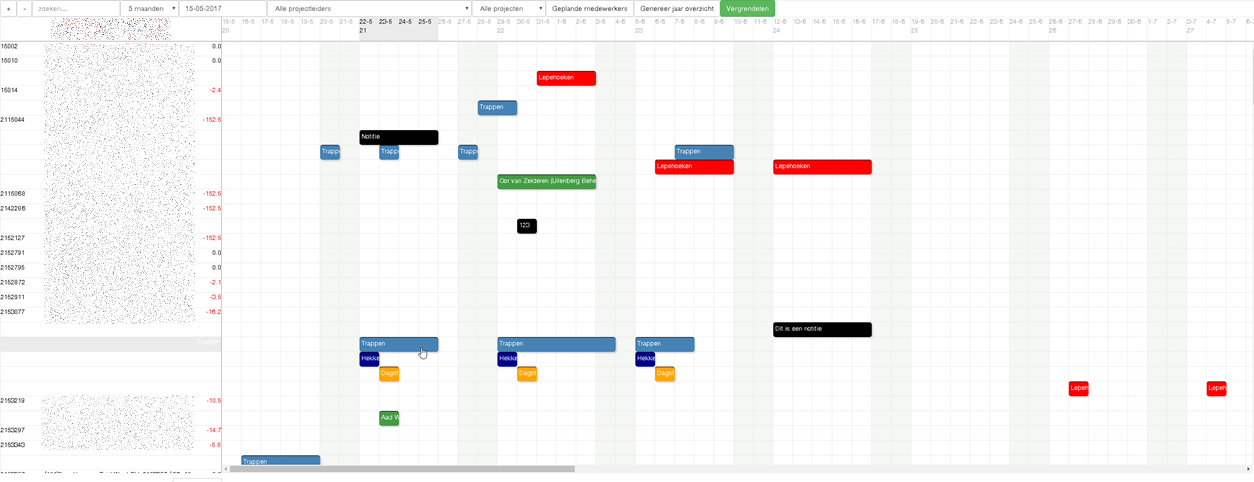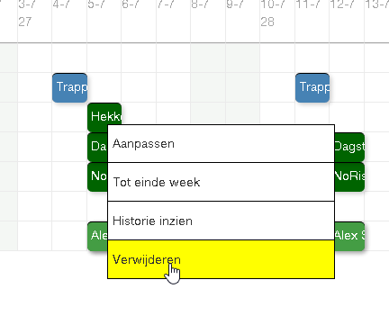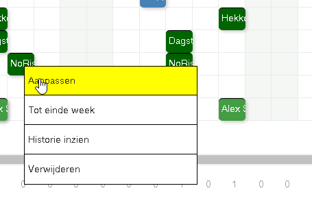 Naast het automatisch laten invullen door het systeem blijft het ook mogelijk om dit handmatig te doen, alle werkcodes waarbij is aangegeven dat deze gebruik kunnen worden zijn beschikbaar om op het planbord neer te zetten, Indien er extra informatie gewenst is om te laten weergeven is het ook mogelijk om een notitie te maken, door een notitie te plaatsen kan deze bewerkt met de rechtermuisknop.