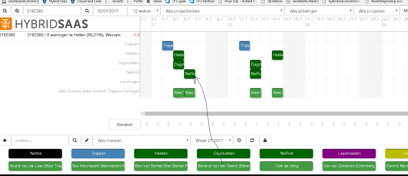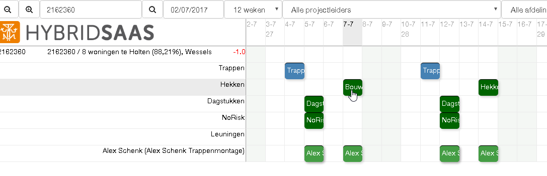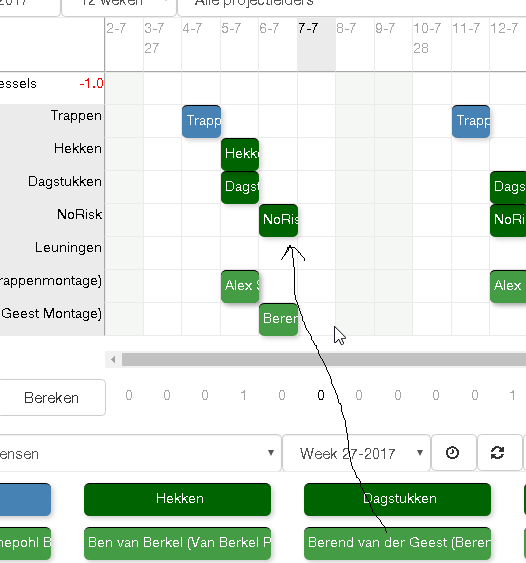 Vanaf het project kan er op een persoon geklikt worden en de gebruikersweergave inzien. Het systeem begint dan vanaf de geselecteerde datum