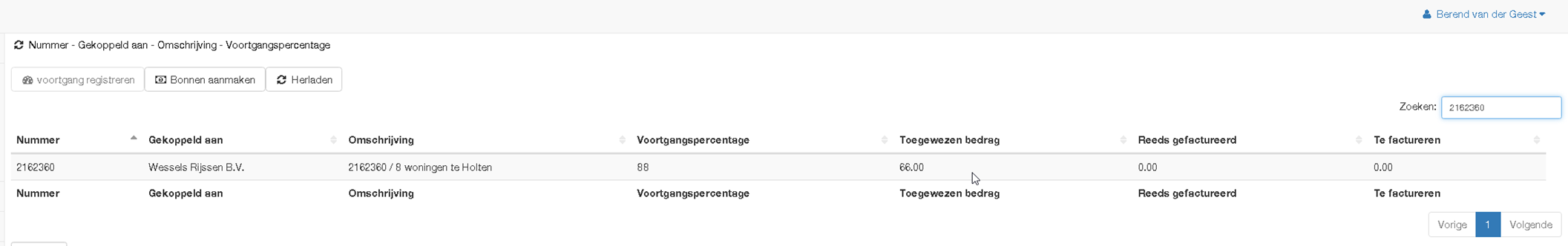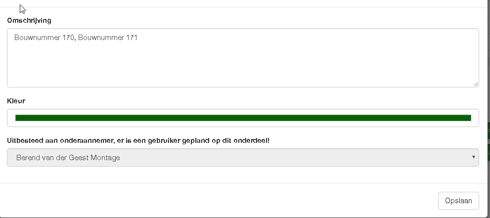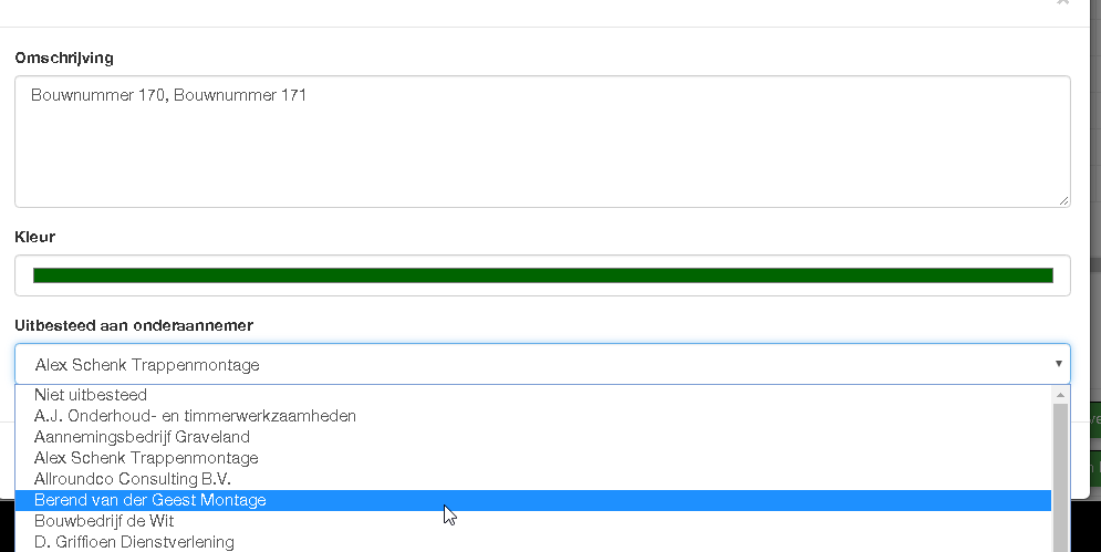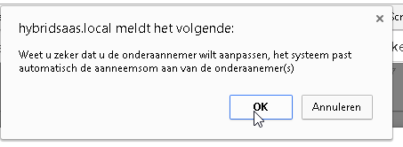 Hier kan de onderaannemer aangepast worden, bij het opslaan gaat het systeem automatisch de aanneemsom van de onderaannemers aanpassen, bij medewerker A gaat het eraf, bij Medewerker B komt het erbij.