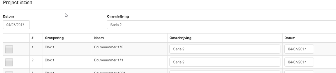 Bovenin is er de mogelijkheid om voor meerdere de gewenste afroep datum en omschrijving mee te geven, dit door de vinkjes aan te zetten en de beschrijving te vullen. Het is ook mogelijk het per regel in te vullen