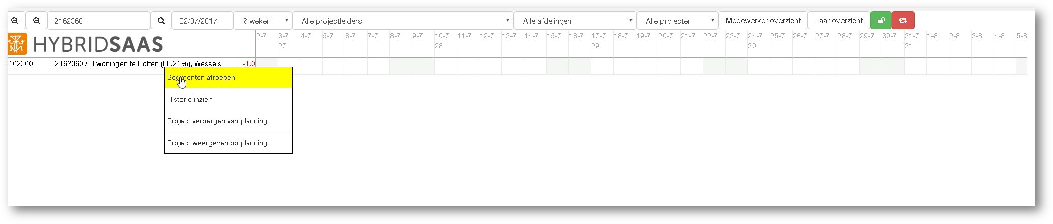Door rechtermuisknop op een project te klikken komt er een actie Segmenten afroepen naar voren