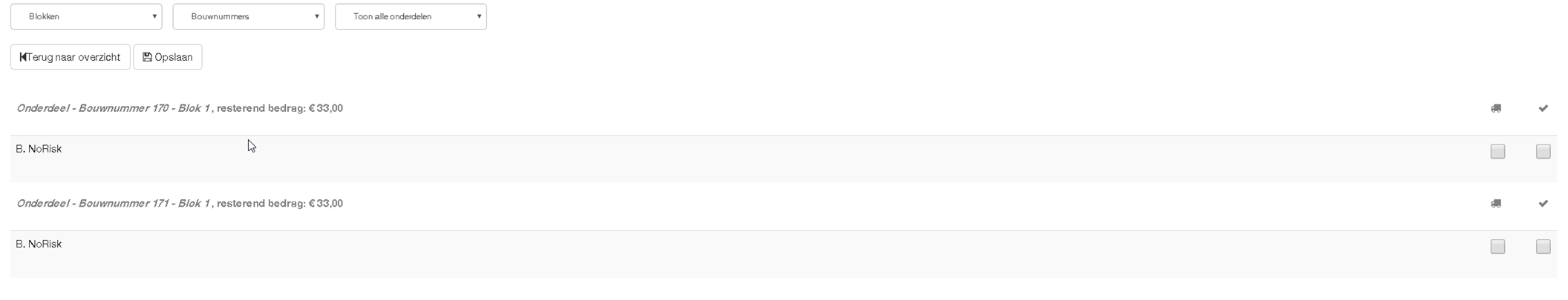 Wanneer er weer wordt gekozen op opnieuw af te roepen, staan deze bouwnummers er weer bij.