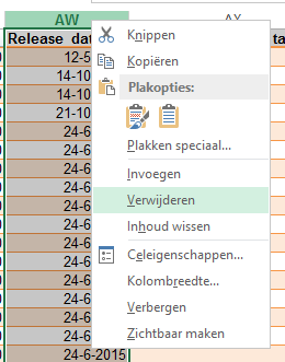 In de kolom Search_Field wordt aangegeven naar welk veld het systeem moet kijken tijdens het inlezen, in de tabel onder Search_field kan je de naam van de kolom ingeven Over het algemeen worden de velden productcode of recordindex gebruikt Je krijgt een hele lijst met kolommen, de kolommen die je niet gebruikt kan je verwijderen zodat je een overzicht houdt, behalve de kolom Search_Field. Zie voor uitleg kolommen hieronder (Rechtermuisknop op de kolom en dan verwijderen)