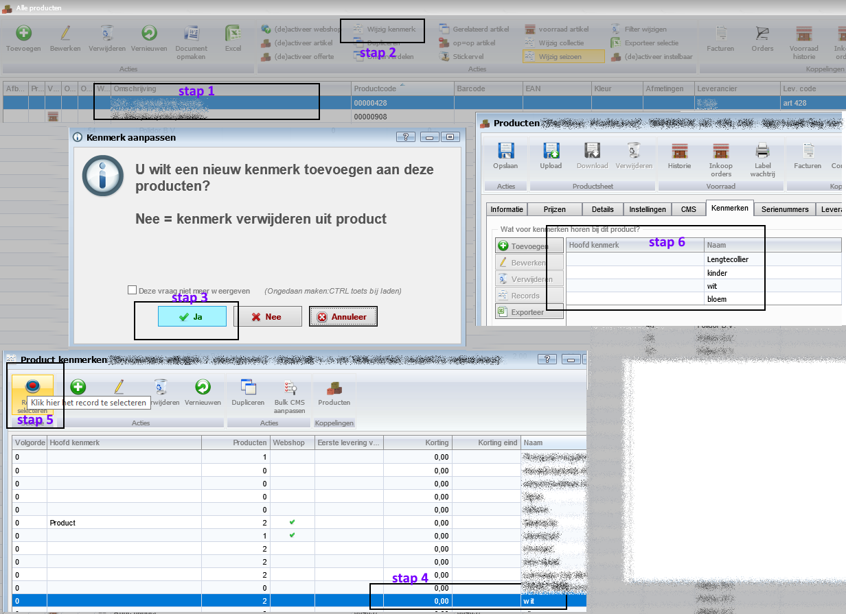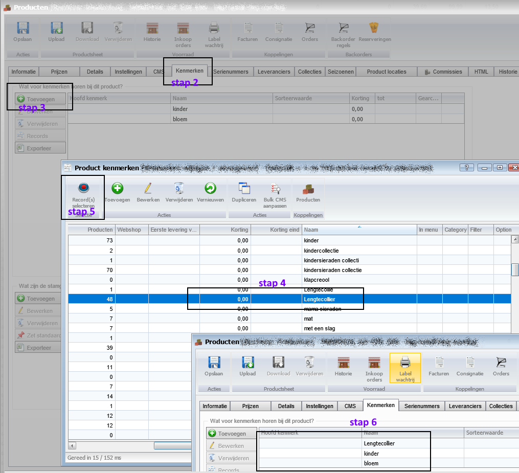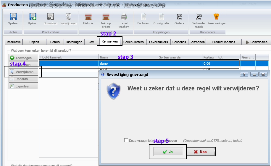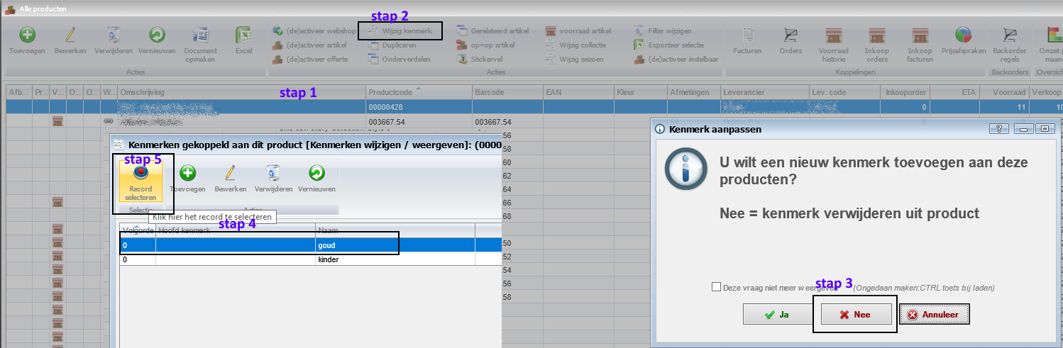 4. Selecteer de kenmerk welke je uit het product wil halen