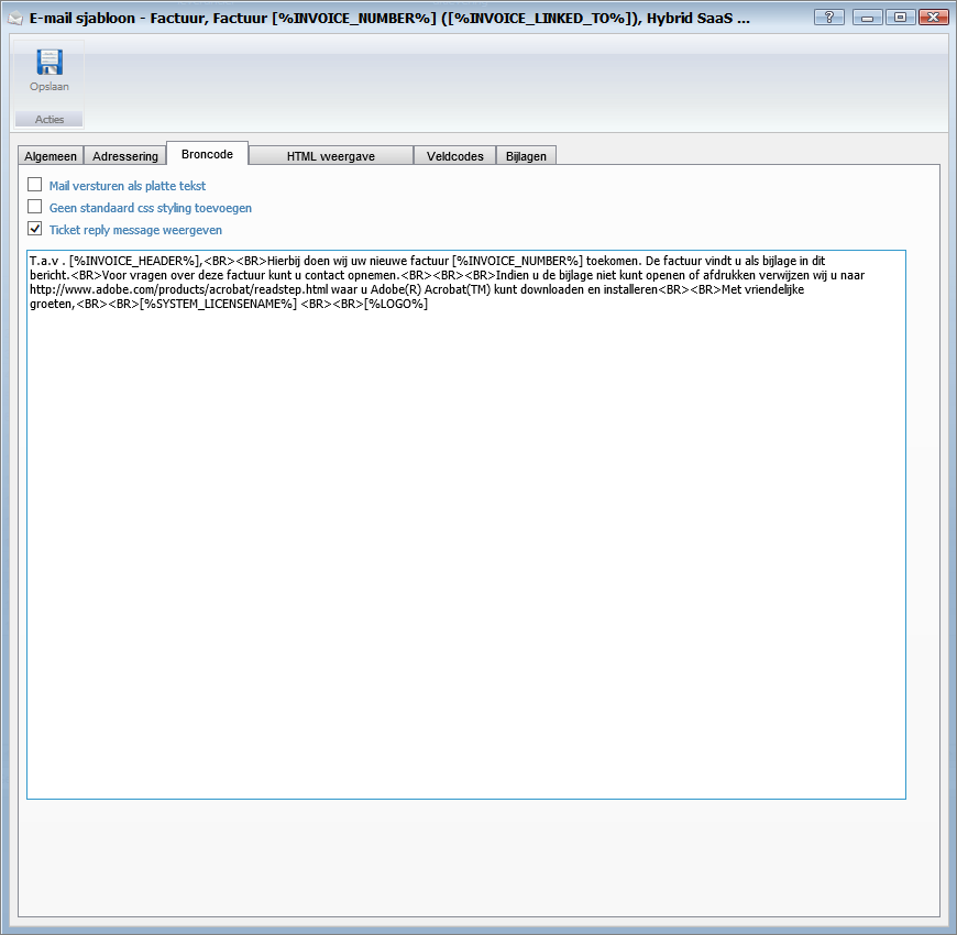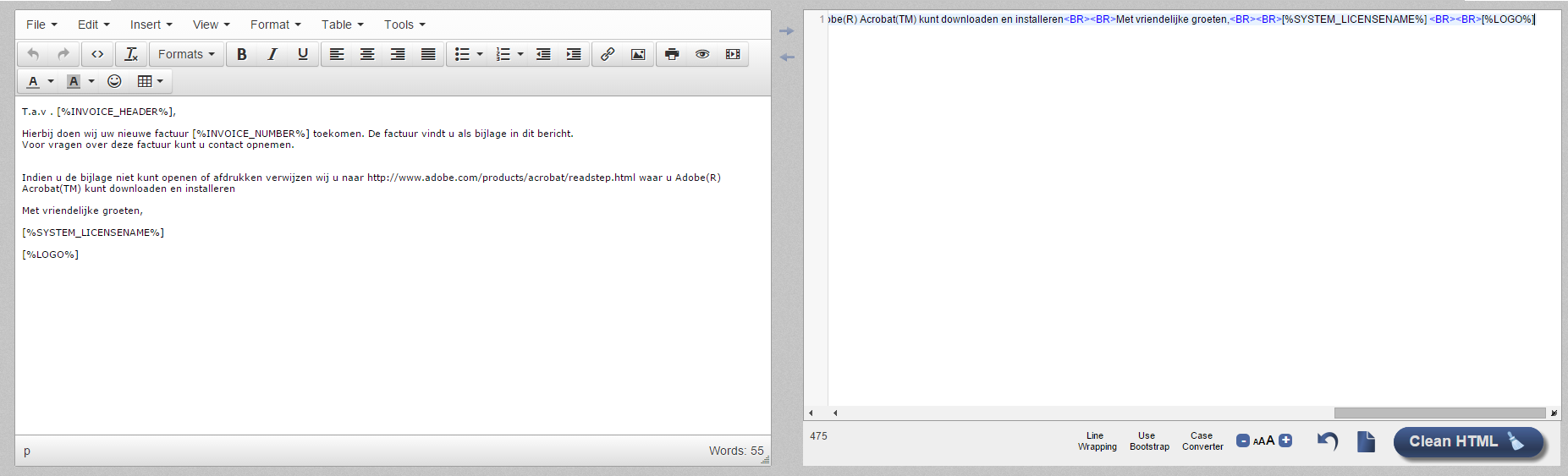 De opmaak van de mail sjablonen kunnen op een specifieke manier worden opgebouwd, hiervoor gebruiken wij de website http://www.html-cleaner.com.