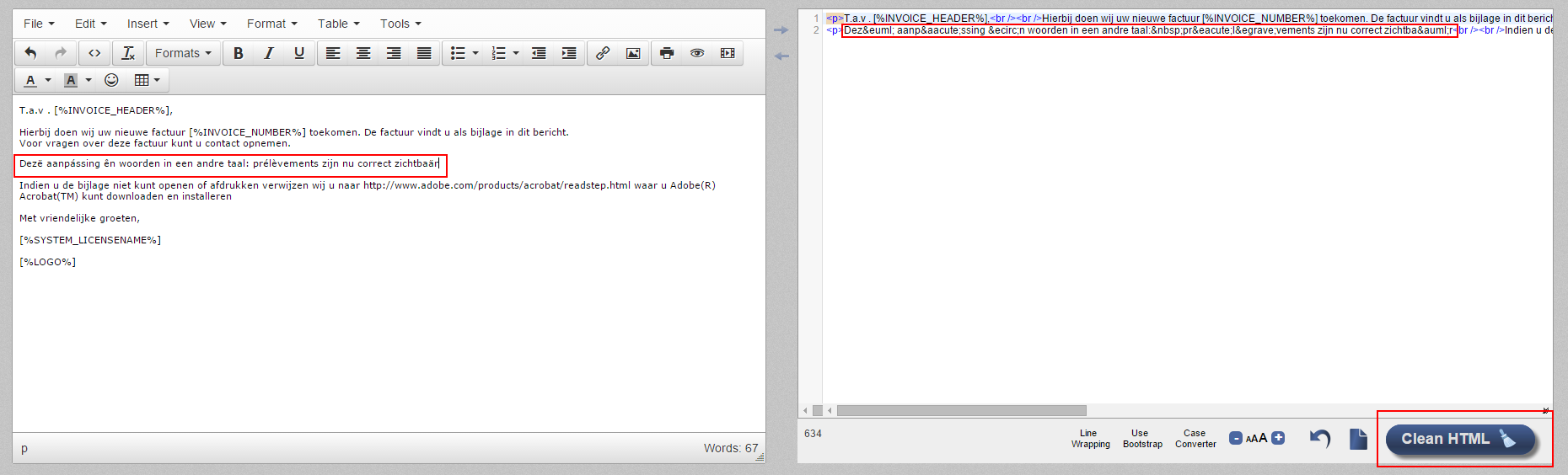 Links kan is de tekst aan te passen naar het gewenste resultaat, en klik dan op clean HTML