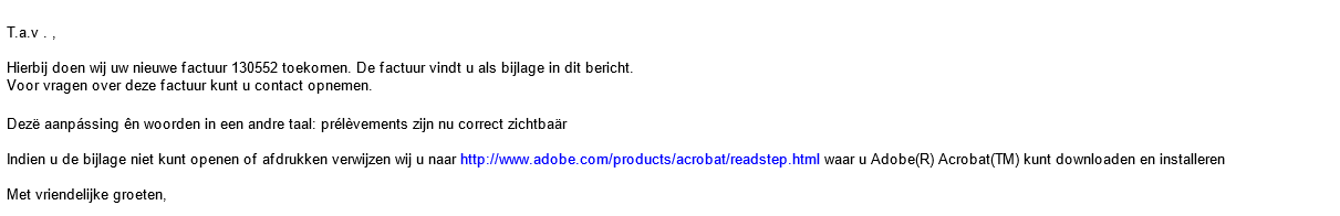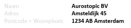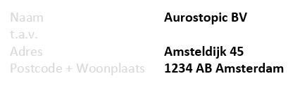 Onderstaande afbeelding laat zien dat er een lege regel wordt weergegeven omdat de t.a.v. niet is ingevuld
