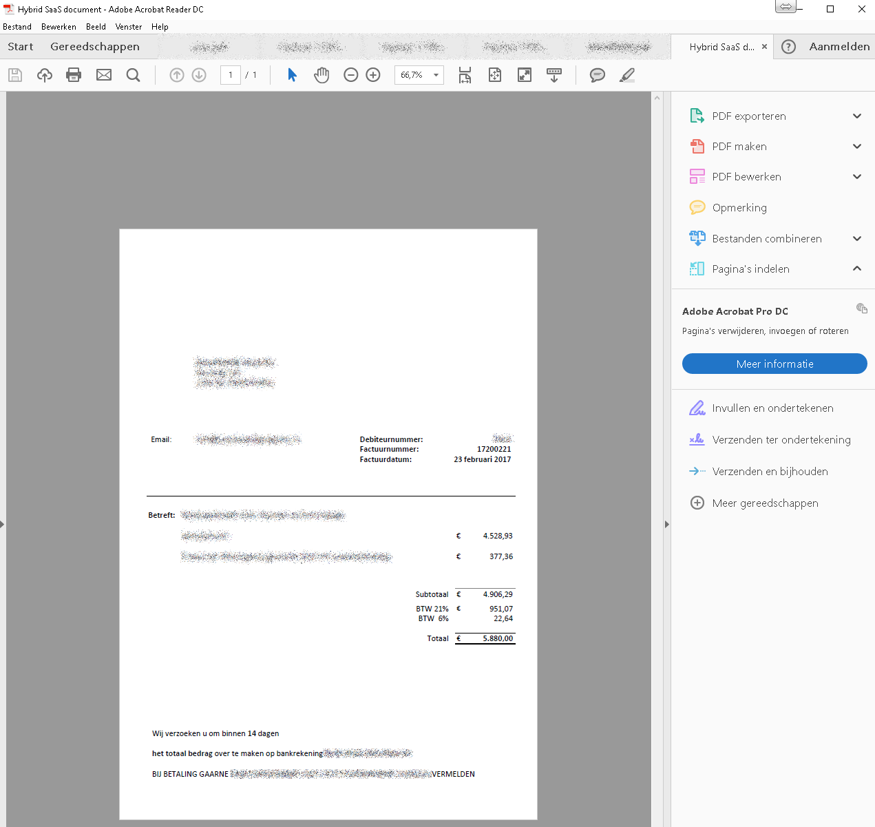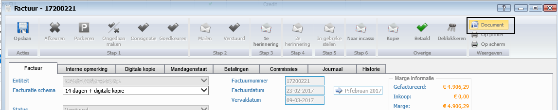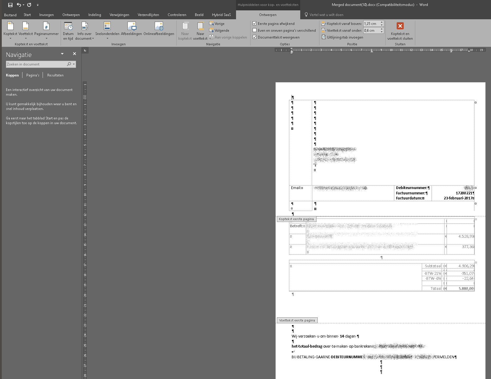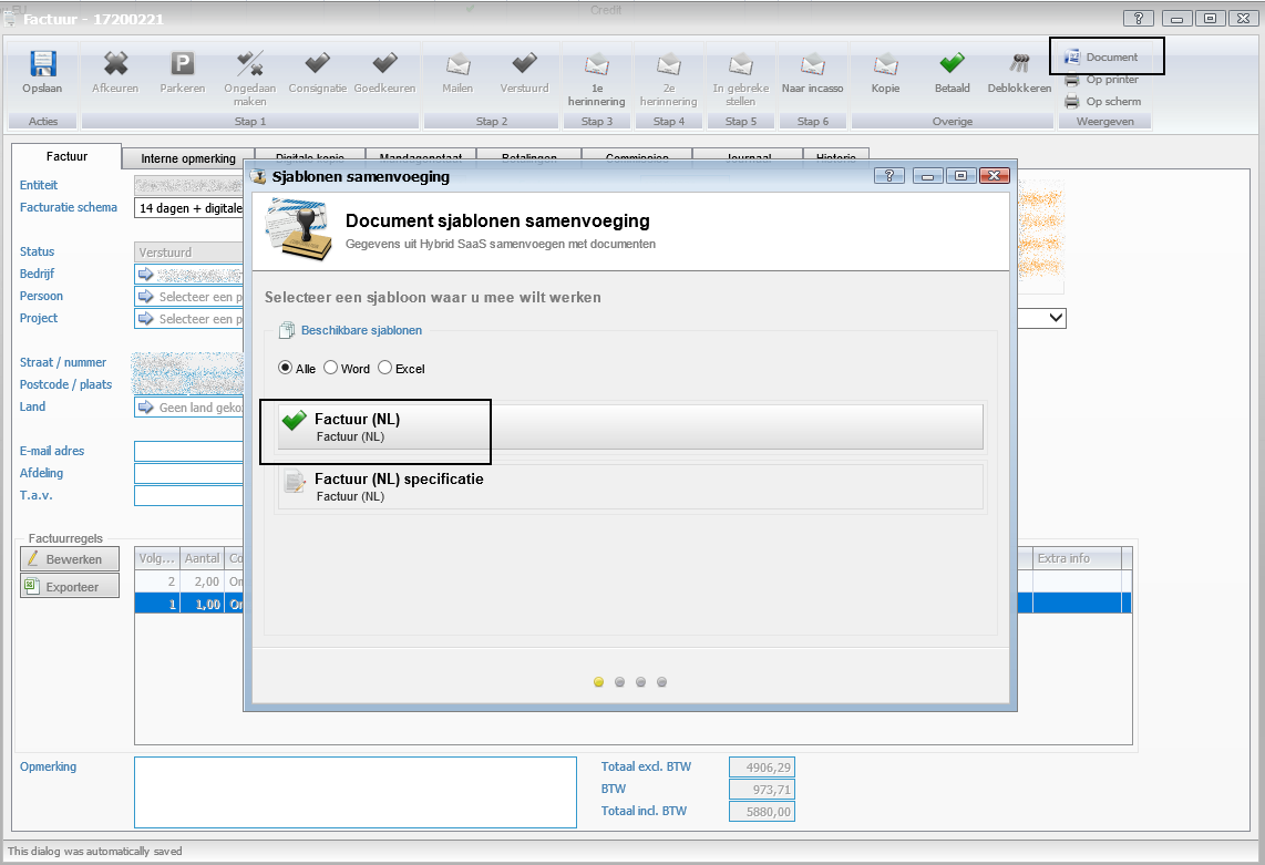 Er zal een word worden geopend met het sjabloon welke gekozen is, met daarin de inhoud van de factuur