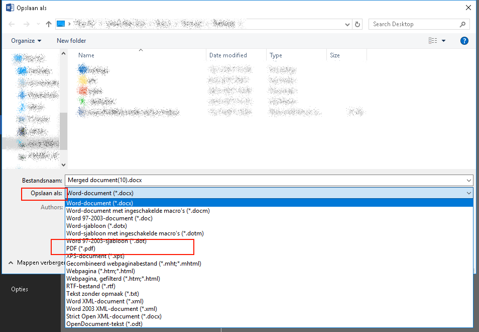 Naast de uitvoer in Word is het ook mogelijk om bijvoorbeeld PDF als uitvoer te kiezen.