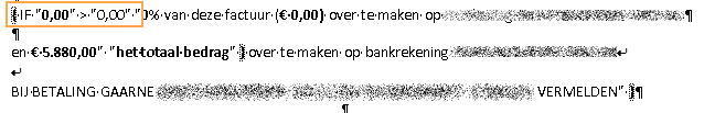 Voeg een lege veldcode in met CTRL+F9 { IF "«INVOICE_HEADER»" <> "" "«INVOICE_HEADER»" }