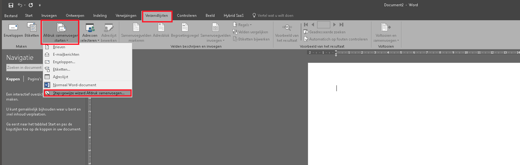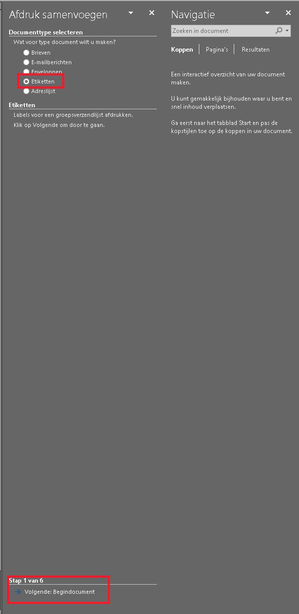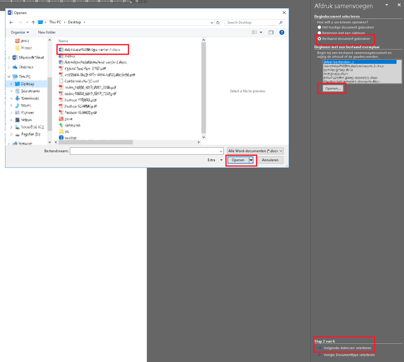 Zorg dat het bolletje bij Microsoft word aan staat en kies voor start samenvoeging