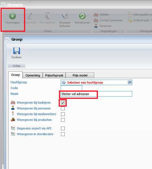 Indien de relaties nog niet in een juiste groep zitten dient er een nieuwe groep aangemaakt te worden ga dan naar Groepen en kies voor toevoegen