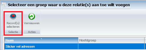 Er zal een pop-up worden getoond met de bekende groepen. Zoek hier de juiste groep op en kies voor record selecteren