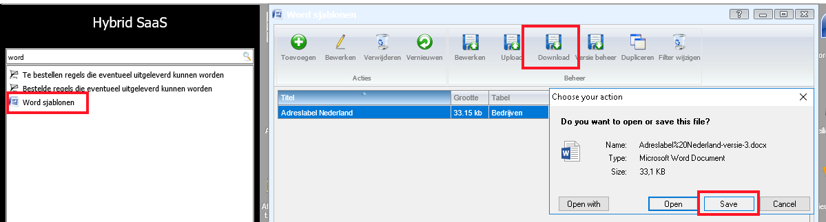 Soms is het niet duidelijk of een wijziging goed is doorgevoerd, of waarom bepaalde data niet correct wordt weergegeven. Het is mogelijk om vanuit Hybrid SaaS een document op te maken in Word.