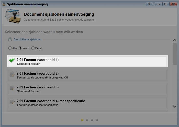 Het sjabloon waar een vinkje voor staat is het sjabloon wat standaard wordt gebruikt bij de geselecteerde relatie.
