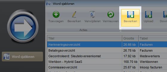Zoek Wordsjablonen Selecteer het betreffende sjabloon en klik op Bewerken