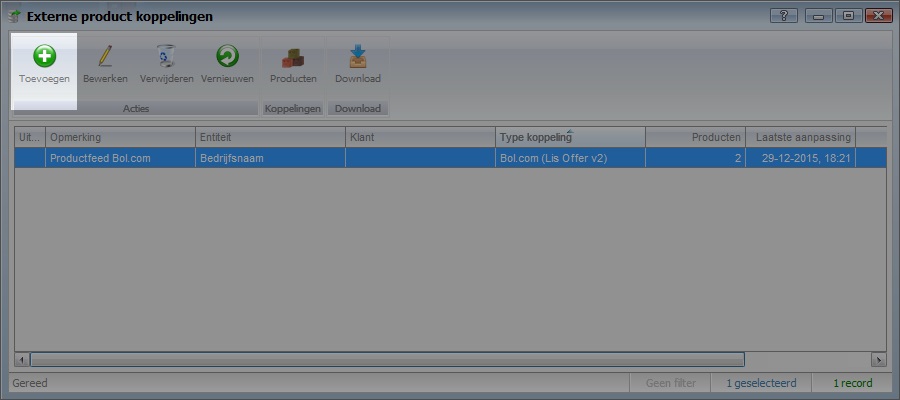 Klik op start en zoek naar externe productkoppeling Klik op toevoegen om een nieuwe externe productkoppeling toe te voegen