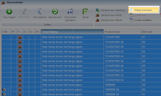 Koppel de producten welke in de feed naar voren dienen te komen aan het betreffende kenmerken. Het is mogelijk om meerdere producten tegelijk aan een kenmerk te koppelen. Uiteraard is het ook mogelijk om de kenmerken per stuk aan een product te koppelen.