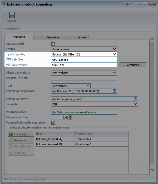 Selecteer het type koppeling welke u wilt aanmaken Vul de verkregen ftp-gegevens in bestaande uit een gebruikersnaam en wachtwoord.